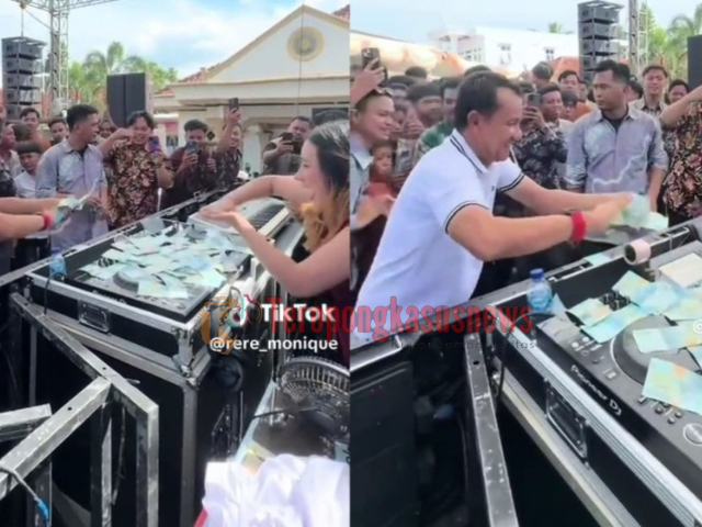 (TK)LampungUtara—  Sebuah video viral di media sosial memperlihatkan anggota DPRD Kabupaten Lampung Utara, Hatami, menyawer seorang disc jockey (DJ) wanita.